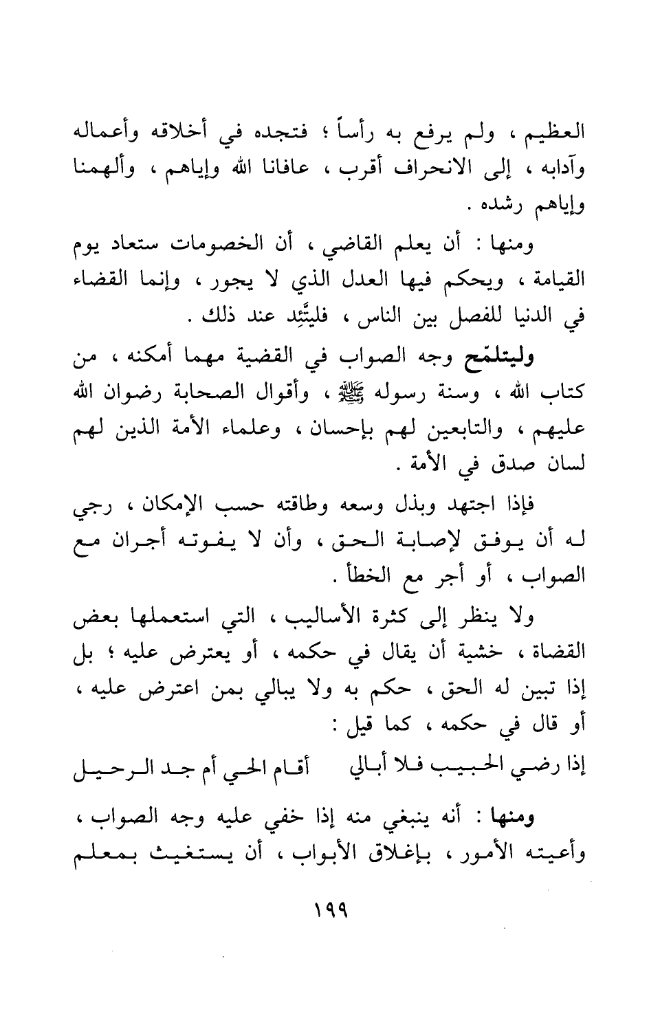 ولا ينظر إلى كثرة الأساليب التي استعملها بعض القضاة، خشية أن يقال في حكمه، أو يعترض عليه; بل إذا تبين له الحق، حكم به ولا يبالي بمن اعترض عليه، أو قال في حكمه، كما قيل: