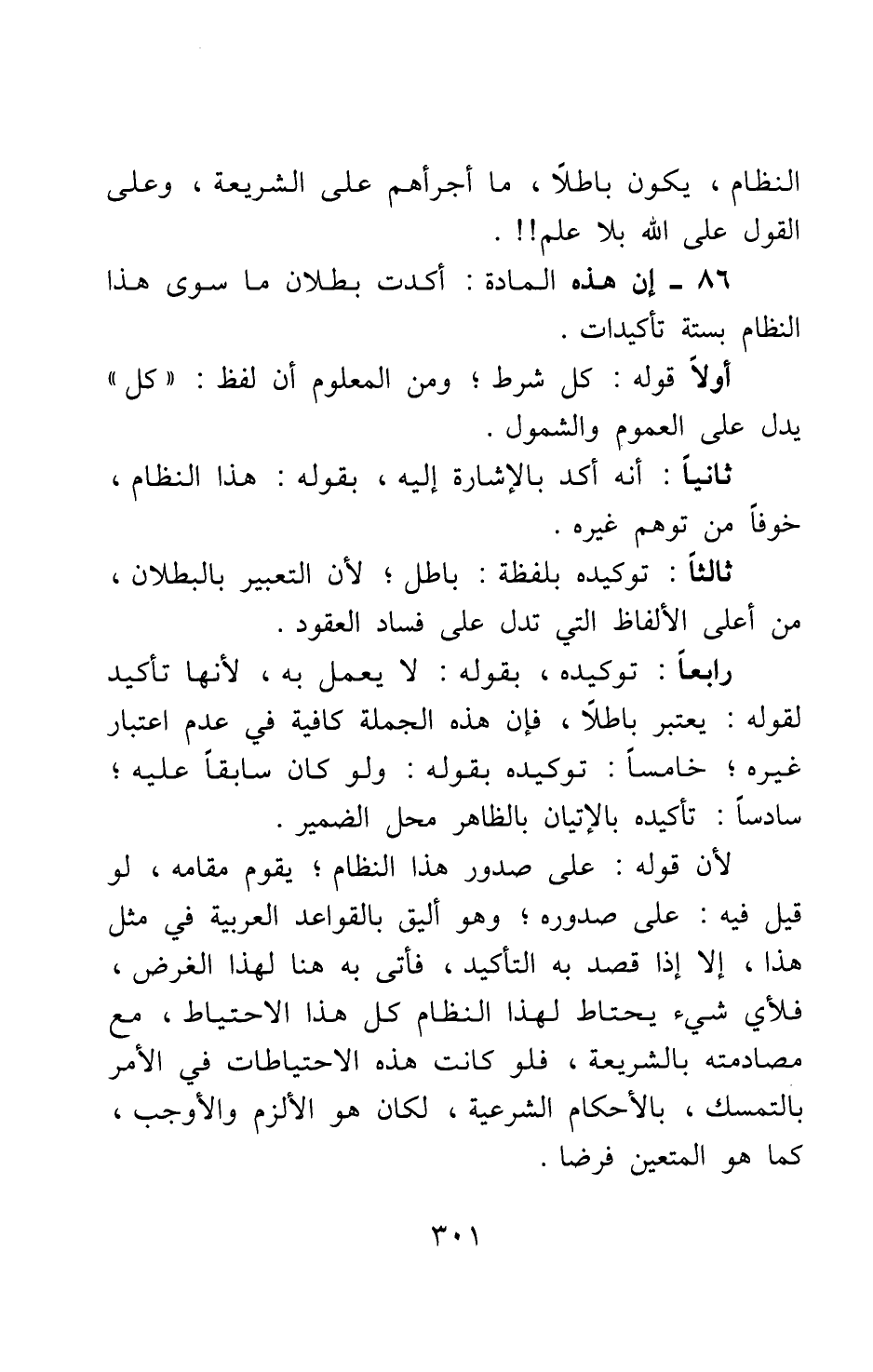 86- إن هذه المادة أكدت بطلان ما سوى هذا النظام بستة تأكيدات.