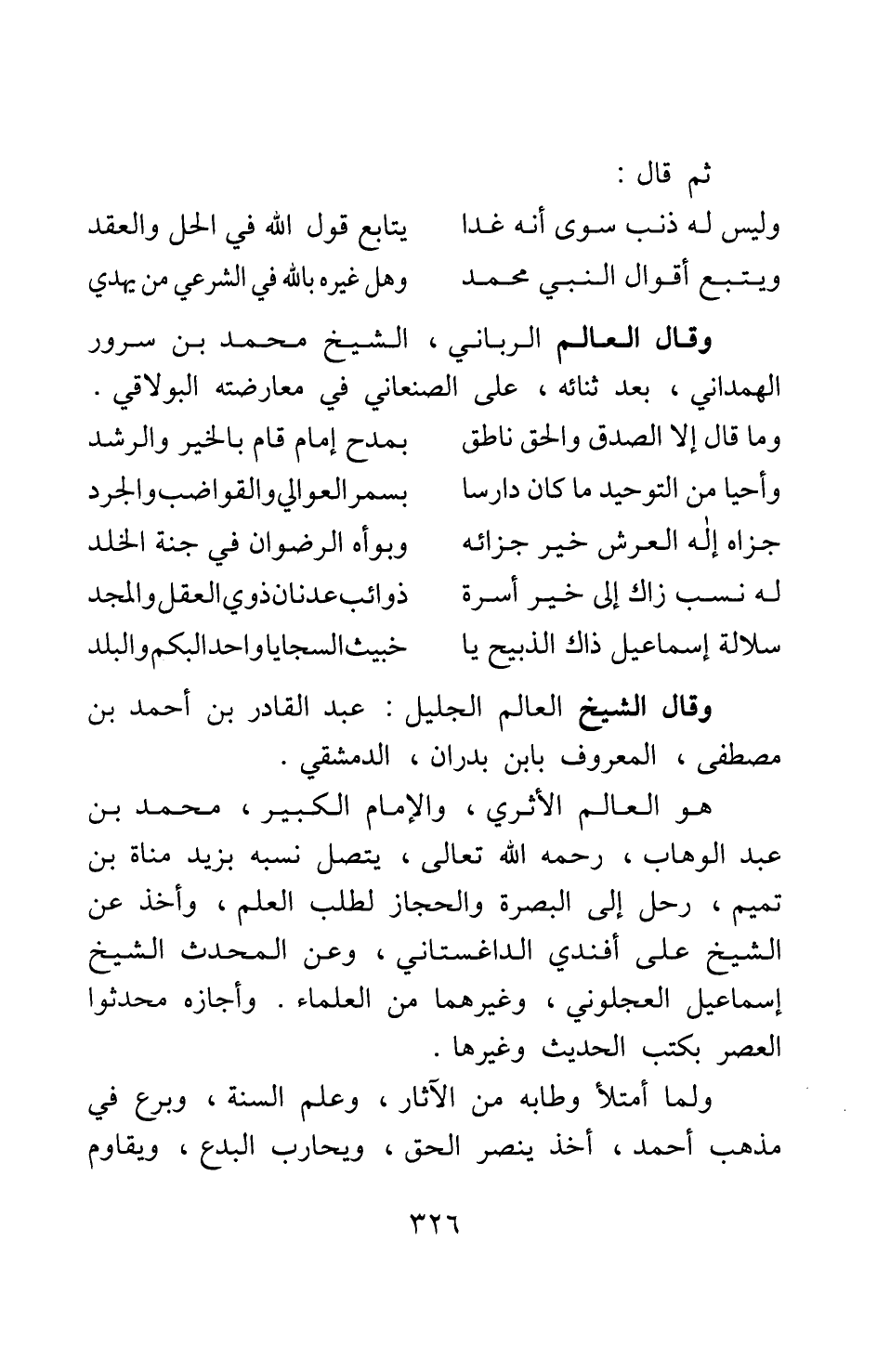 وقال الشيخ العالم الجليل عبد القادر بن أحمد بن مصطفى، المعروف بابن بدران، الدمشقي.