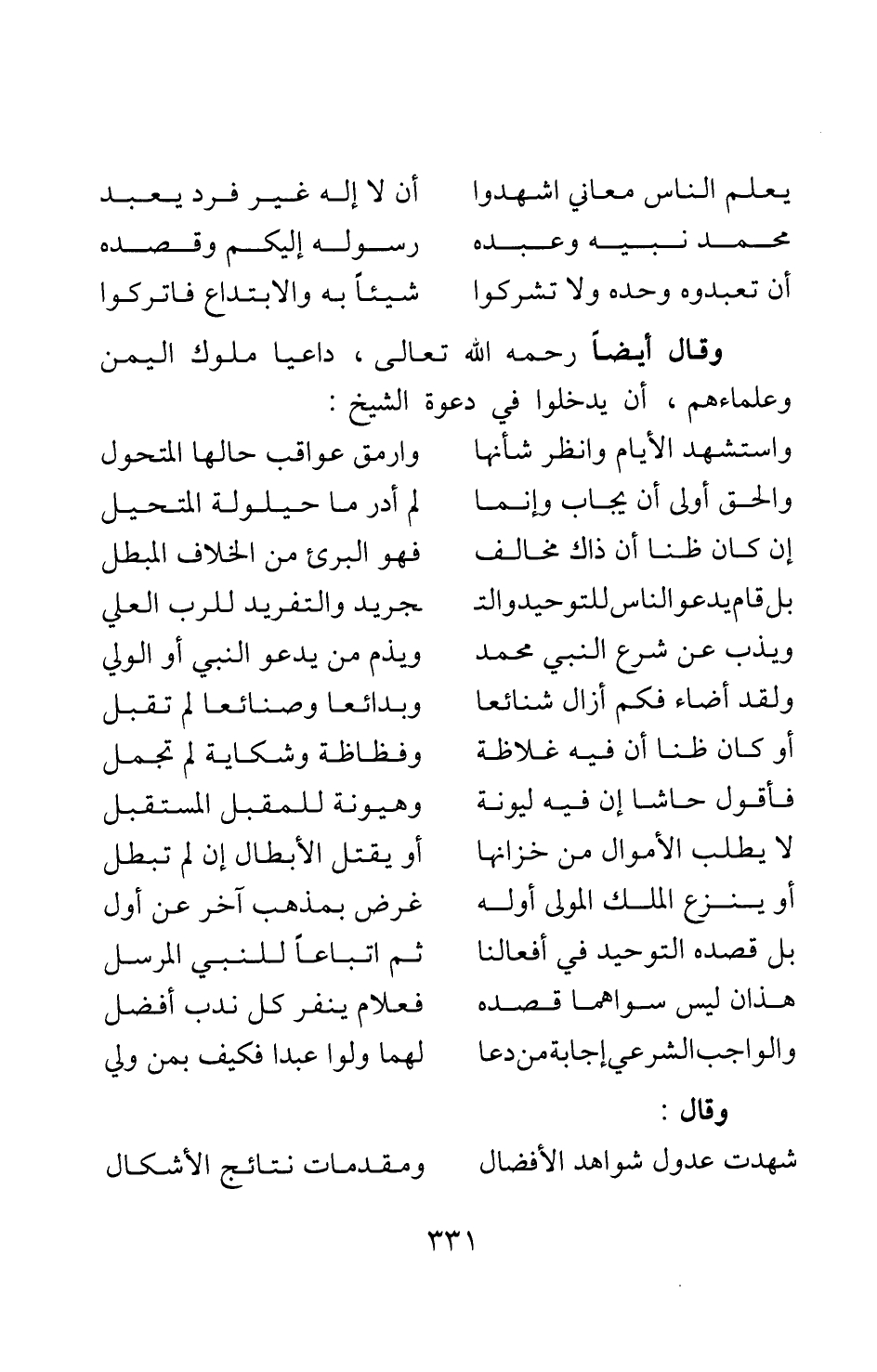 وقال أيضا رحمه الله تعالى، داعيا ملوك اليمن وعلماءهم، أن يدخلوا في دعوة الشيخ: