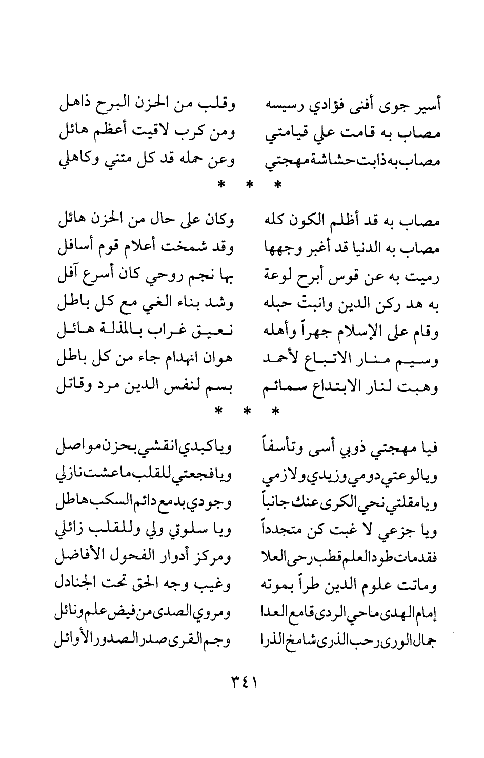فيا مهجتي ذوبي أسى وتأسفا ... ويا لوعتي دومي وزيدي ولازمي