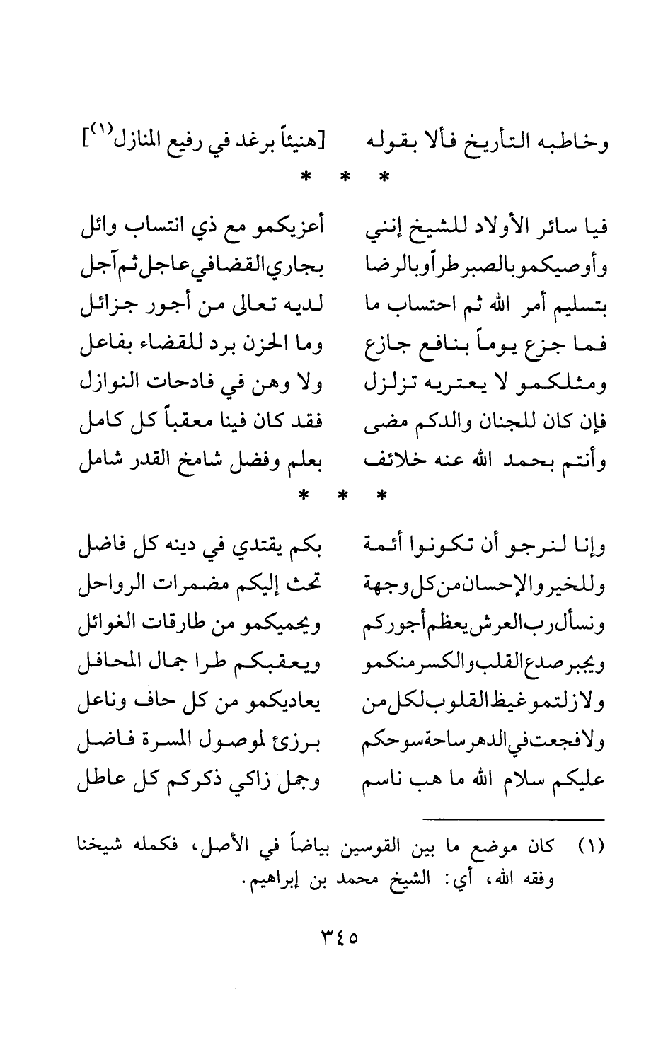 وخاطبه التاريخ فألا بقوله ... فيا سائر الأولاد للشيخ إنني