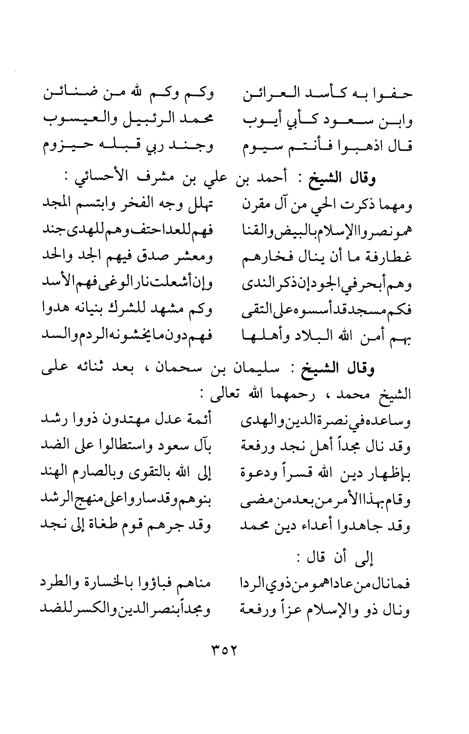 وقال الشيخ: سليمان بن سحمان، بعد ثنائه على الشيخ محمد، رحمهما الله تعالى: