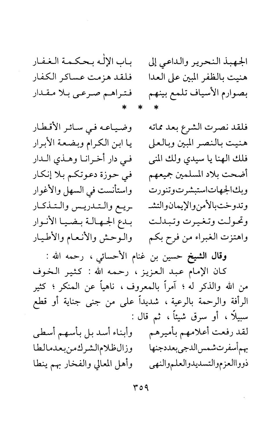 وقال الشيخ حسين بن غنام الأحسائي، رحمه الله:
