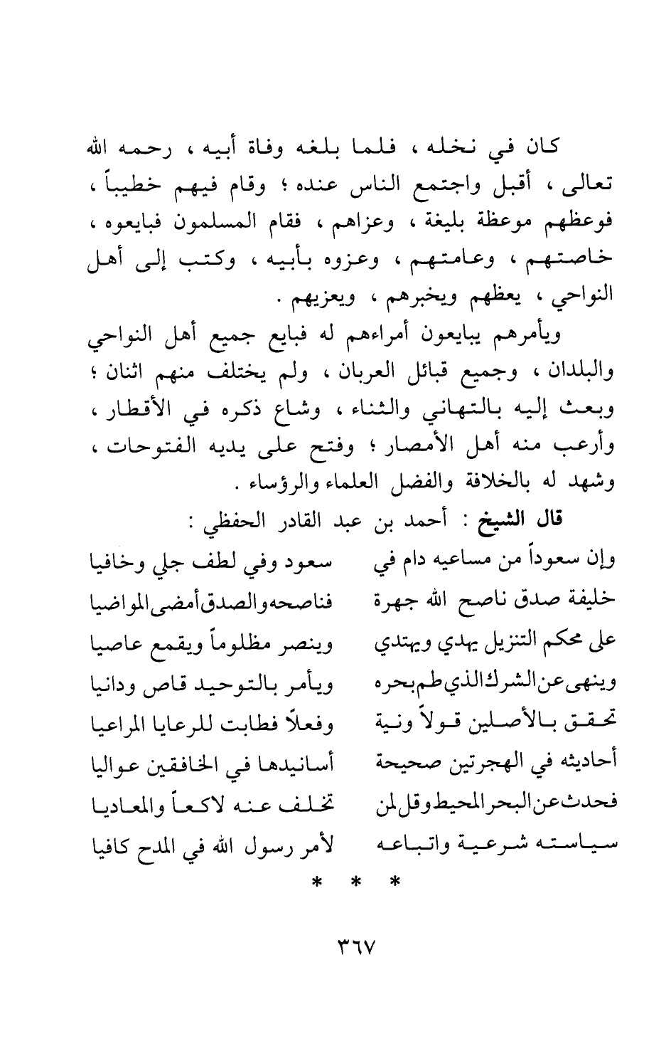 قال الشيخ: أحمد بن عبد القادر الحفظي: