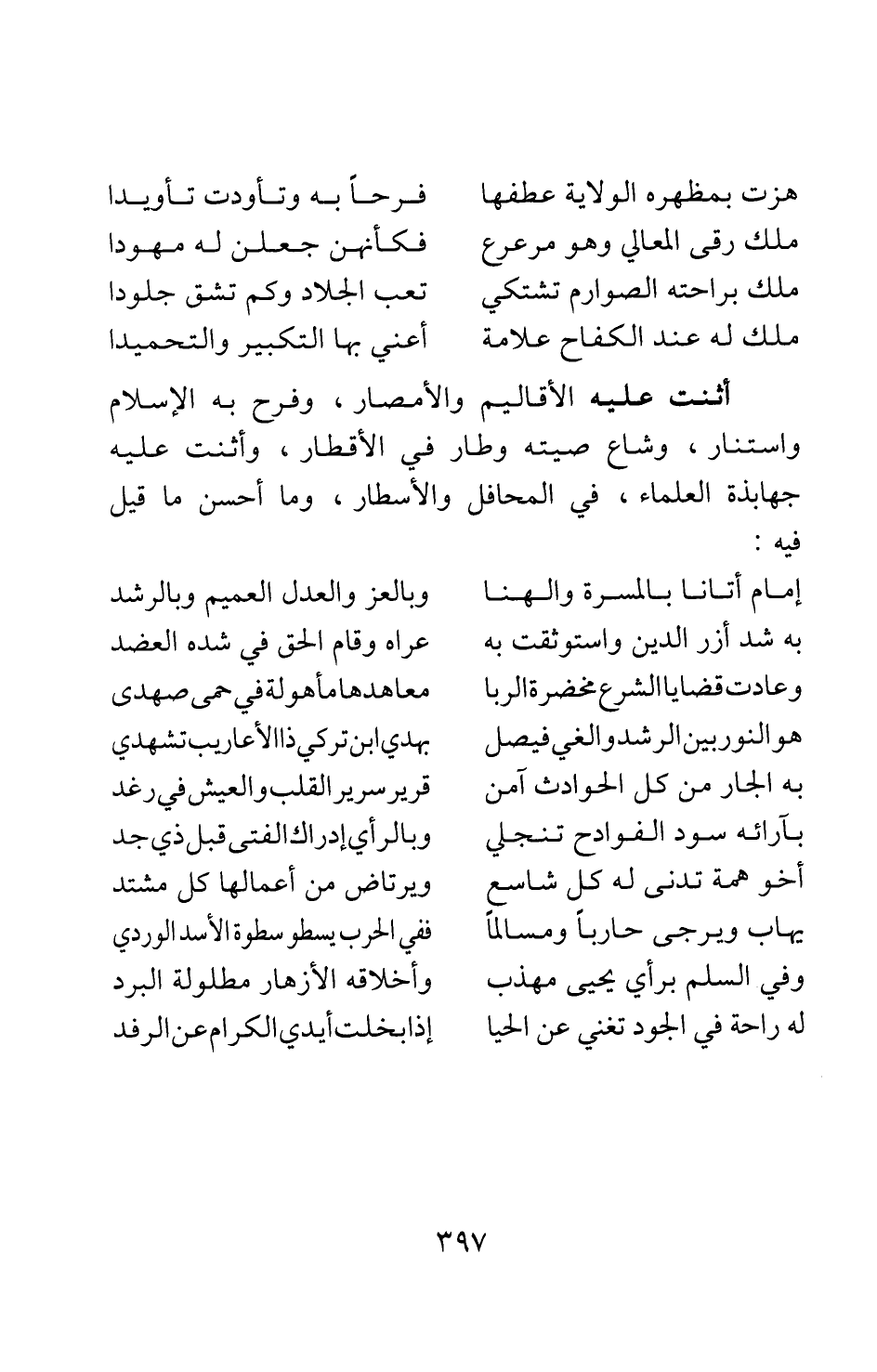 أثنت عليه الأقاليم والأمصار، وفرح به الإسلام واستنار، وشاع صيته وطار في الأقطار، وأثنت عليه جهابذة العلماء، في المحافل والأسطار، وما أحسن ما قيل فيه: