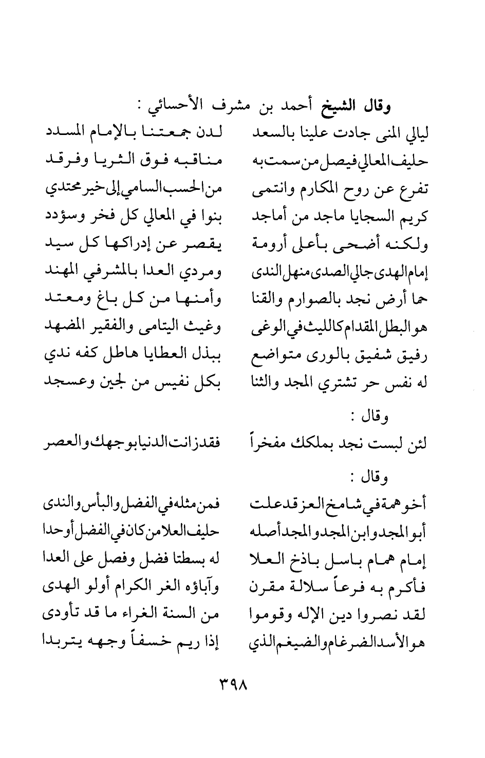 وقال الشيخ أحمد بن مشرف الأحسائي:
