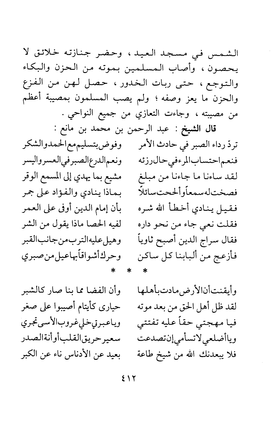 قال الشيخ: عبد الرحمن بن محمد بن مانع: