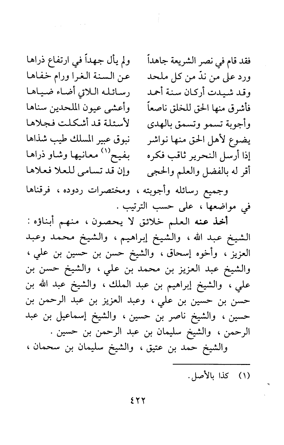 فقد قام في نصر الشريعة جاهدا ... ورد على من ند من كل ملحد