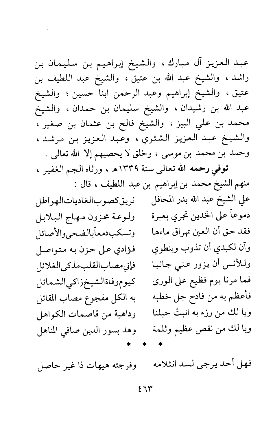 وهد بسور الدين صافي المناهل ... على الشيخ عبد الله بدر المحافل