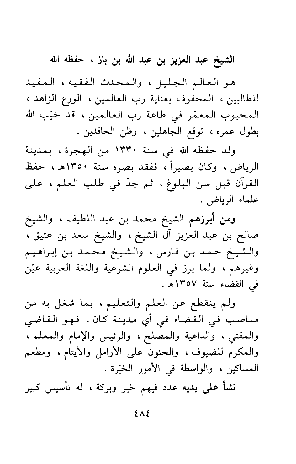 هو العالم الجليل، والمحدث الفقيه، المفيد للطالبين، المحفوف بعناية رب العالمين، الورع الزاهد، المحبوب المعمر في طاعة رب العالمين، قد خيّب الله بطول عمره، توقع الجاهلين، وظن الحاقدين. ولد حفظه الله في سنة 1330 من الهجرة، بمدينة الرياض، وكان بصيرا، ففقد بصره سنة 1350هـ، حفظ القرآن قبل سن البلوغ، ثم جدّ في طلب العلم، على علماء الرياض.