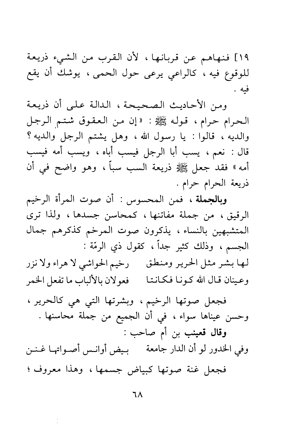 وبالجملة، فمن المحسوس أن صوت المرأة الرخيم الرقيق من جملة مفاتنها، كمحاسن جسدها؛ ولذا ترى المتشبهين بالنساء يذكرون صوت المرخم كذكرهم جمال الجسم، وذلك كثير جدا، كقول ذي الرمة: