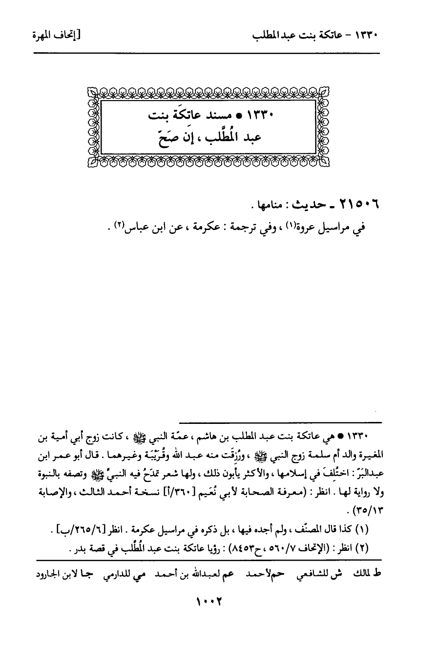 1330 ـ مسند عاتكة بنت عبد المطلب، إن صح