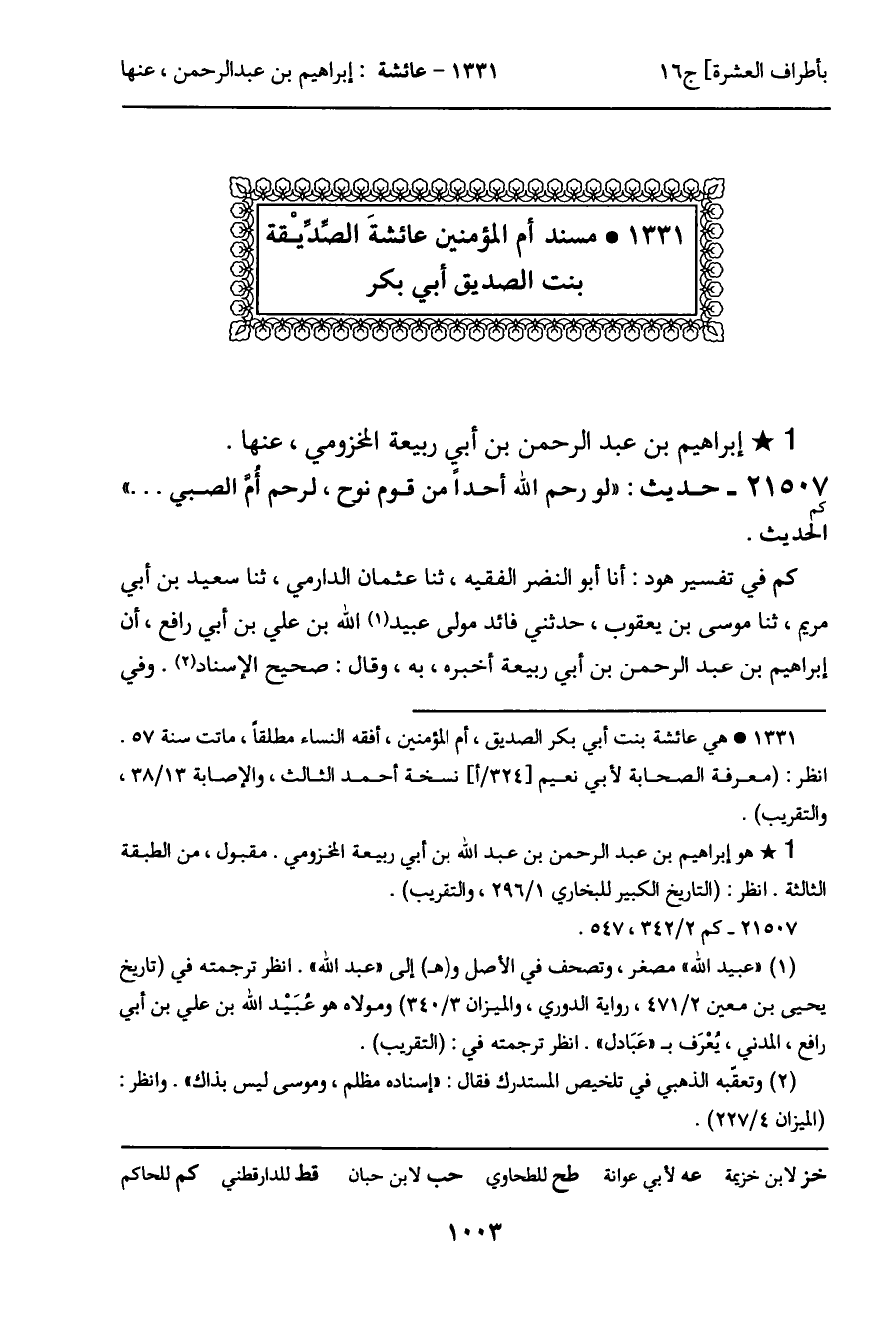 1331 ـ مسند أم المؤمنين عائشة الصديقة بنت الصديق أبي بكر