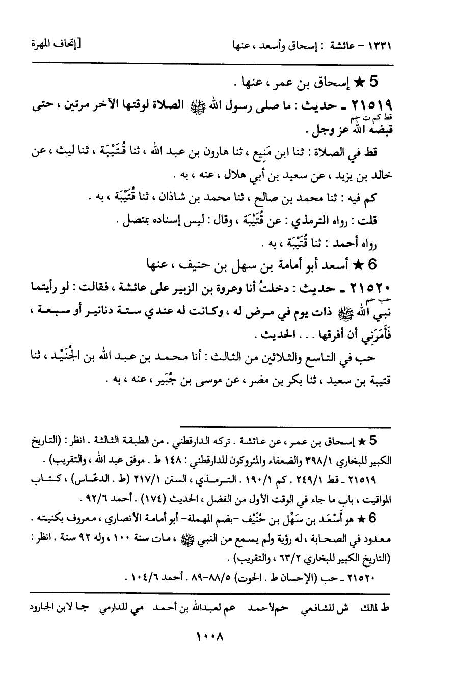 21520 - حديث (حب حم) : دخلتُ أنا وعروة بن الزبير على عائشة، فقالت: لو رأيتما نبي الله - صَلَّى اللَّهُ عَلَيْهِ وَسَلَّمَ - ذات يوم في مرض له، وكانت له عندي ستة دنانير أو سبعة، فَأَمَرَنِي أن أفرقها ... الحديث.
