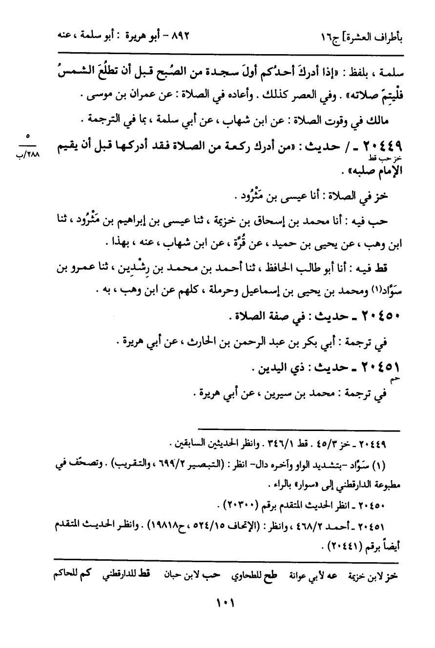 20449 - حديث (خز حب قط) : "من أدرك ركعة من الصلاة فقد أدركها قبل أن يقيم الإمام صلبه".