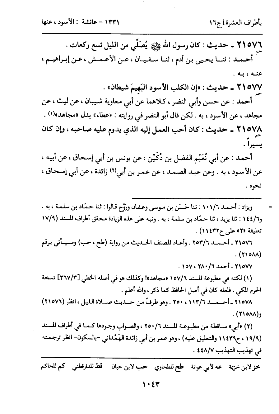 21576 - حديث (حم) : كان رسول الله - صَلَّى اللَّهُ عَلَيْهِ وَسَلَّمَ - يُصَلي من الليل تسع ركعات.