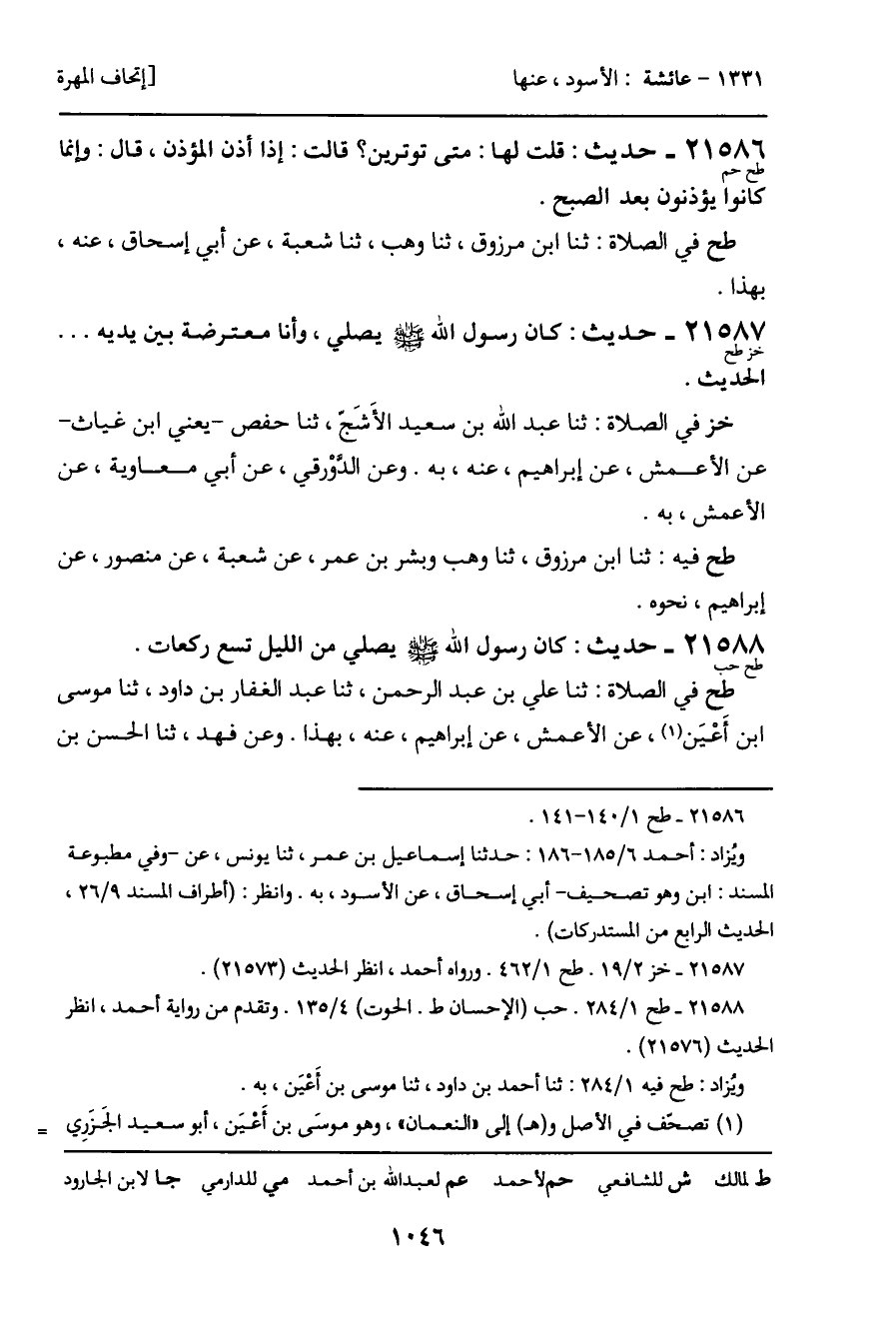 21588 - حديث (طح حب) : كان رسول الله - صَلَّى اللَّهُ عَلَيْهِ وَسَلَّمَ - يصلي من الليل تسع ركعات.