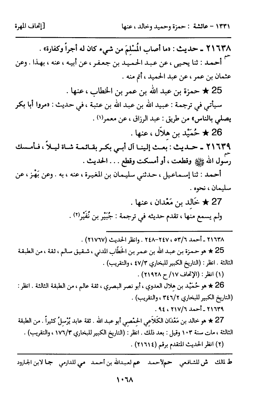 21638 - حديث (حم) : "ما أصاب المُسلِمَ من شيء كان له أجراً وكفارة".