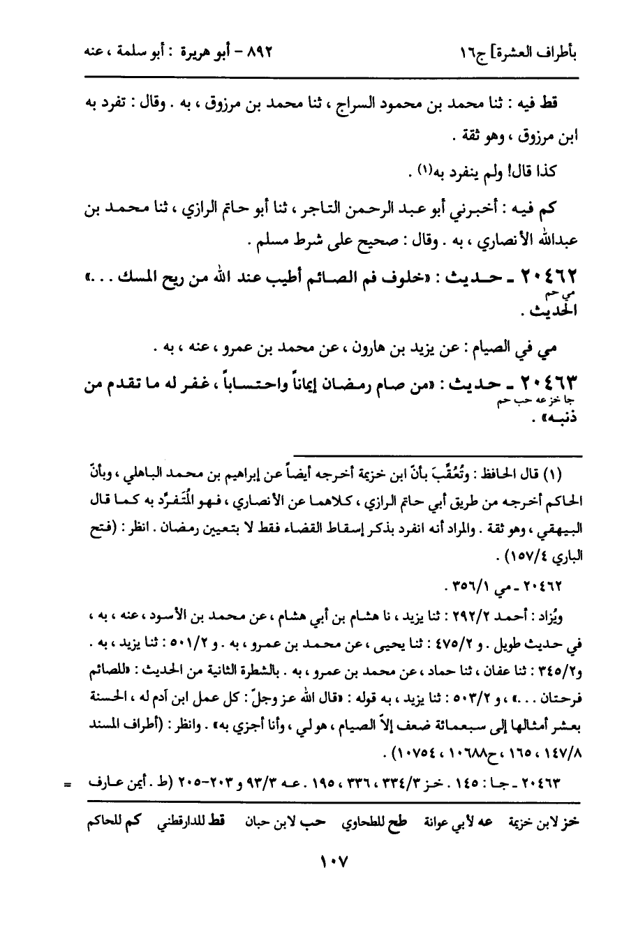 20463 - حديث (جا خز عه حب حم) : "من صام رمضان إيماناً واحتساباً، غفر له ما تقدم من ذنبه".