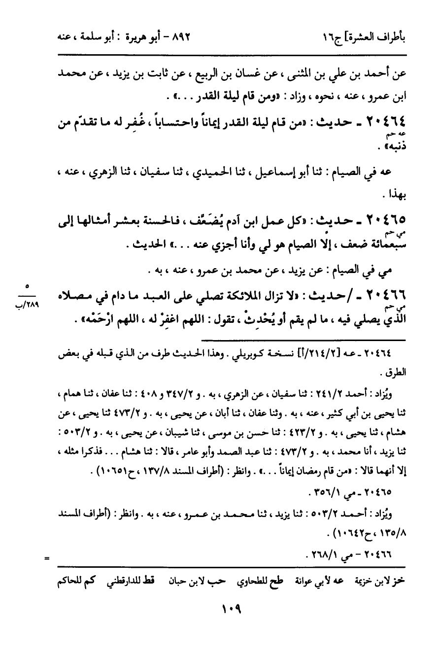 20464 - حديث (عه حم) : "من قام ليلة القدر إيماناً واحتساباً، غُفر له ما تقدم من ذنبه".