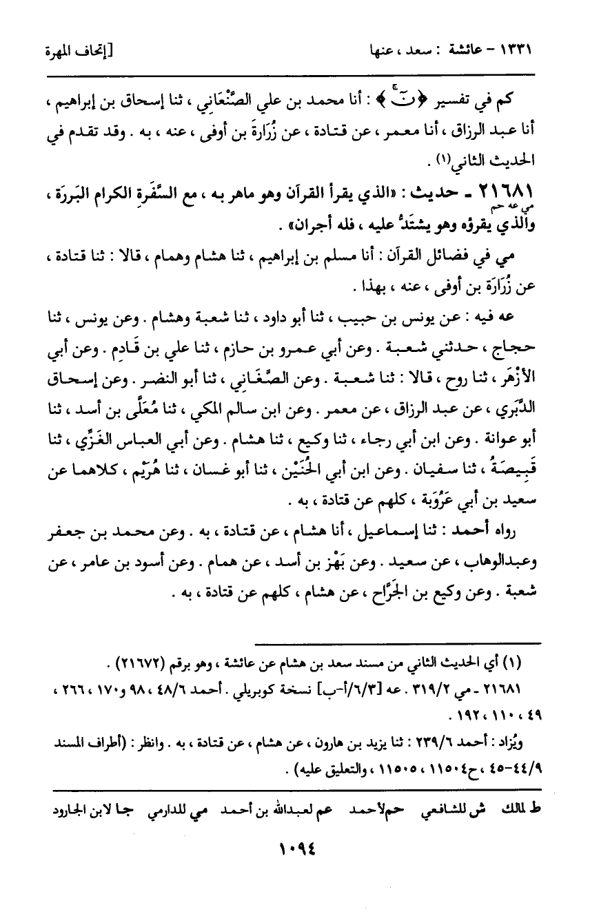 مي في فضائل القرآن: أنا مسلم بن إبراهيم، ثنا هشام وهمام، قالا: ثنا قتادة، عن زُرَارَة بن أوفى، عنه، بهذا.