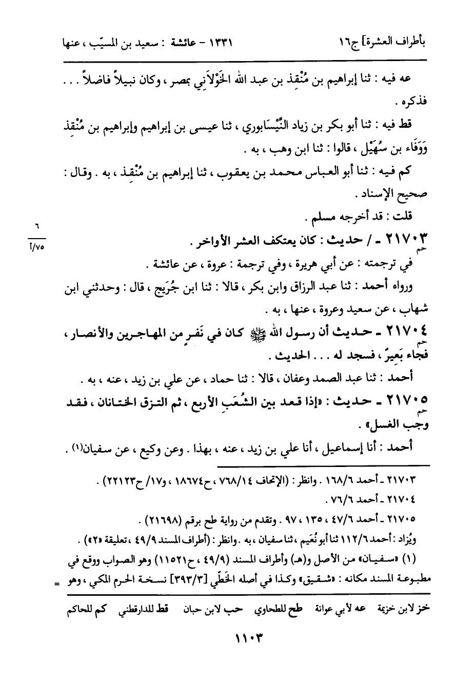 21703 - حديث (حم) : كان يعتكف العشر الأواخر.