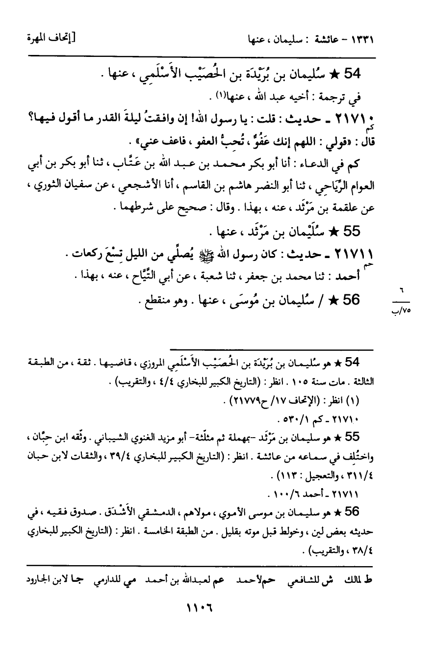 21710 - حديث (كم) : قلت: يا رسول الله! إن وافقتُ ليلةَ القدر ما أقول فيها؟ قال: "قولي: اللهم إنك عَفُو، تُحب العفو، فاعف عني".