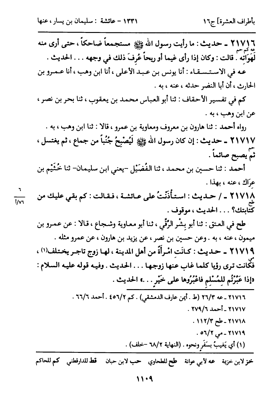 21718 - حديث (طح) : استأْذنتُ على عائشة، فقالت: كم بقي عليك من كتابتك؟ ... الحديث، موقوف.