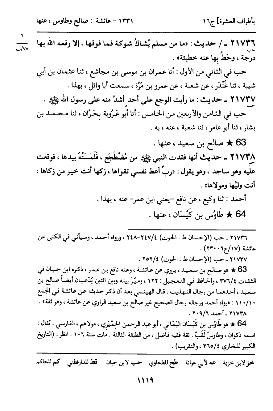 21736 - حديث (حب) : "ما من مسلم يشاك شوكة فما فوقها، إلا رفعه الله بها درجة، وحَط بِها عنه خطيئة".