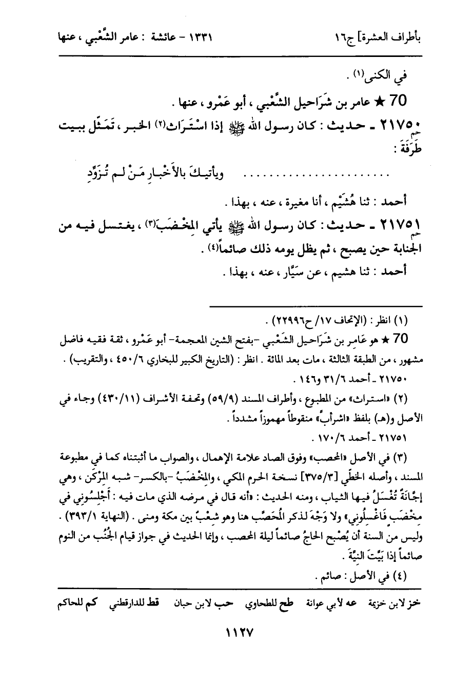 ـ عامر بن شَرَاحيل الشعْبي، أبو عَمْرو، عنها.