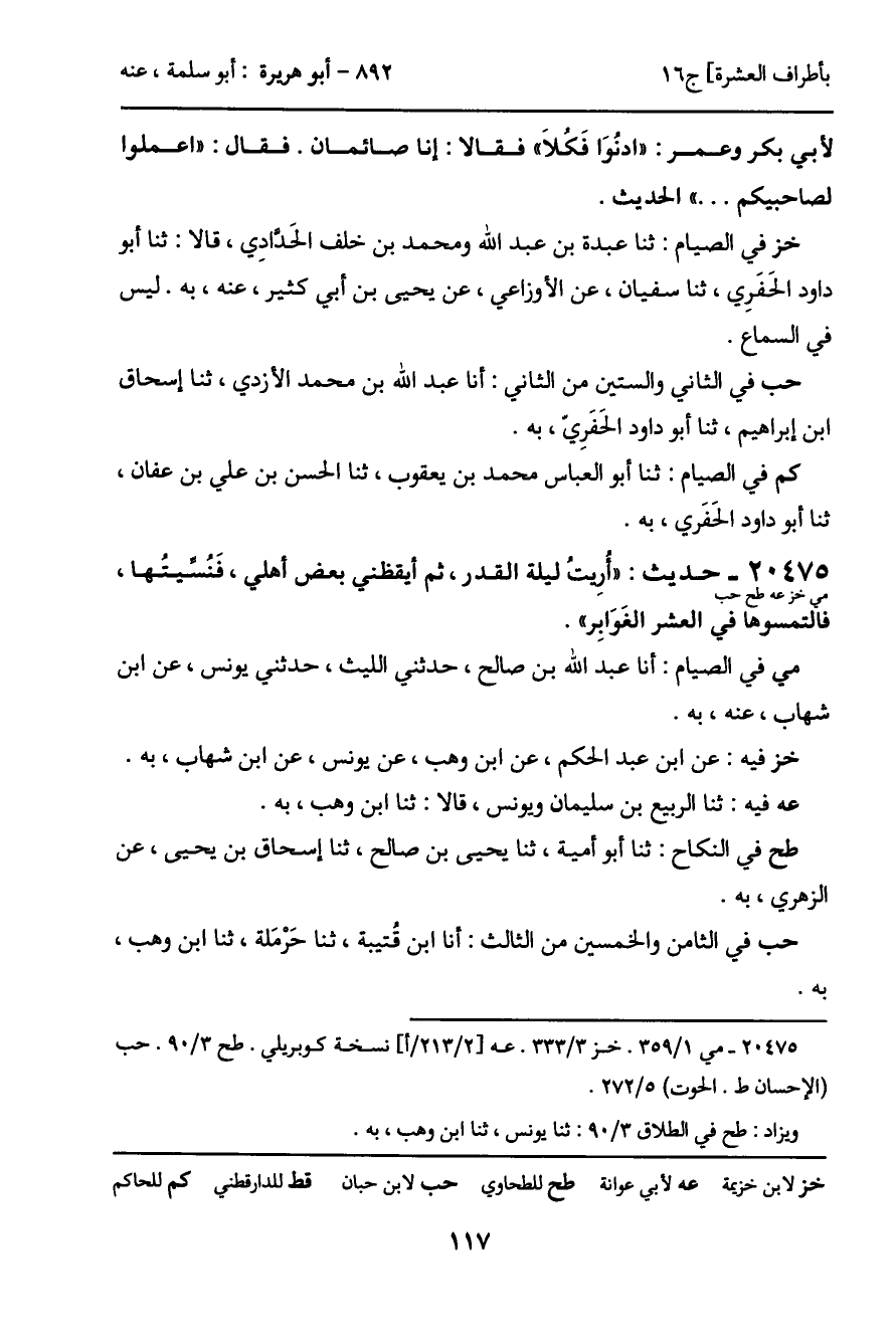 20475 - حديث (مي خز عه طح حب) : "أريتُ ليلة القدر، ثم أيقظني بعض أهلي، فَنُسيتها، فالتمسوها في العشر الغَوَابِر".