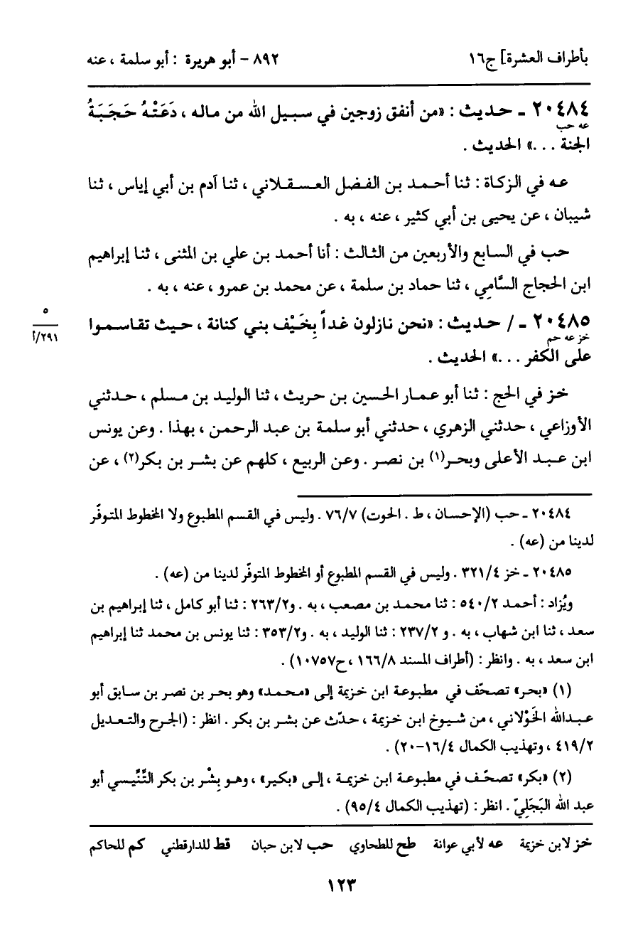 20484 - حديث (عه حب) : من أنفق زوجين في سبيل الله من ماله، دَعَتْهُ حَجَبَةُ الجنة ... " الحديث.