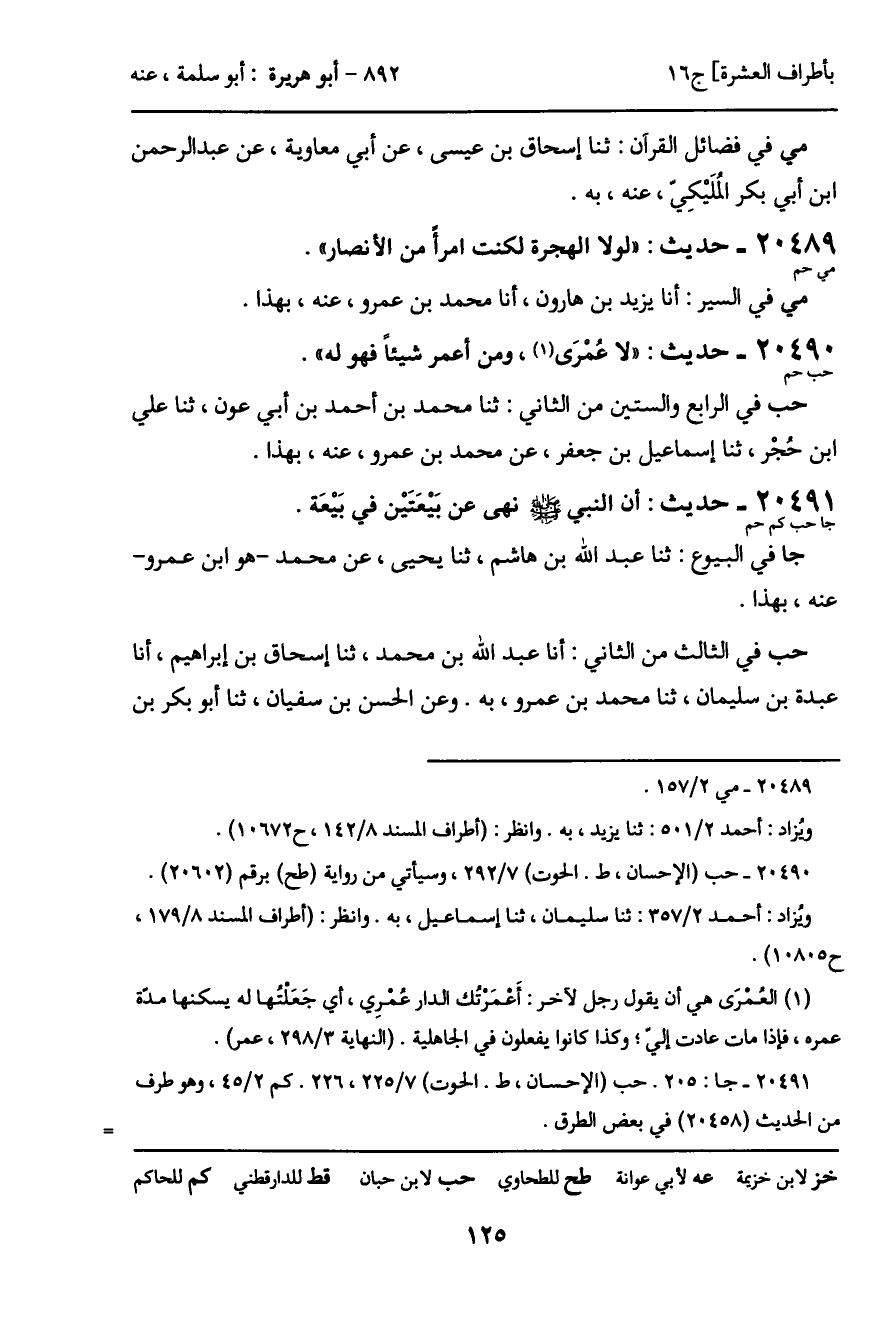 20490 - حديث (حب حم) : "لا عمْرَى، ومن أعمر شيئاً فهو له".