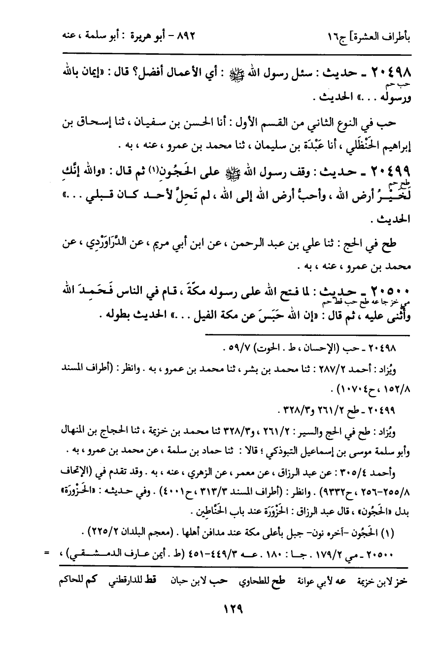 20499 - حديث (طح حم) : وقف رسول الله - صَلَّى اللَّهُ عَلَيْهِ وَسَلَّمَ - على الحجُون ثم قال:"والله إنك لخيْر أرض الله، وأحب أرض الله إلى الله، لم تَحِل لأحد كان قبلي ... " الحديث.