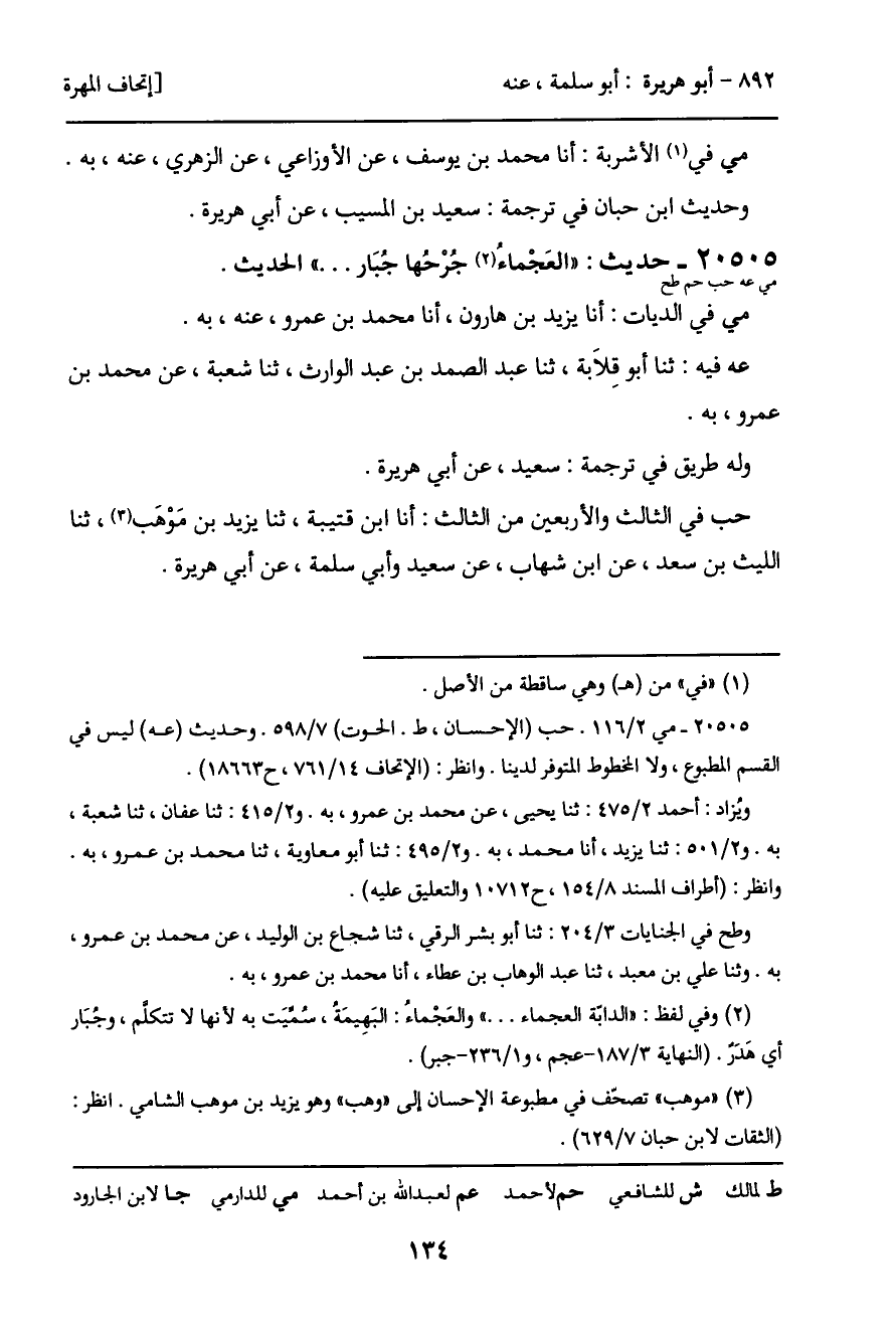 -[135]- وباقي طرقه في ترجمة: سعيد بن المسيب، عن أبي هريرة.