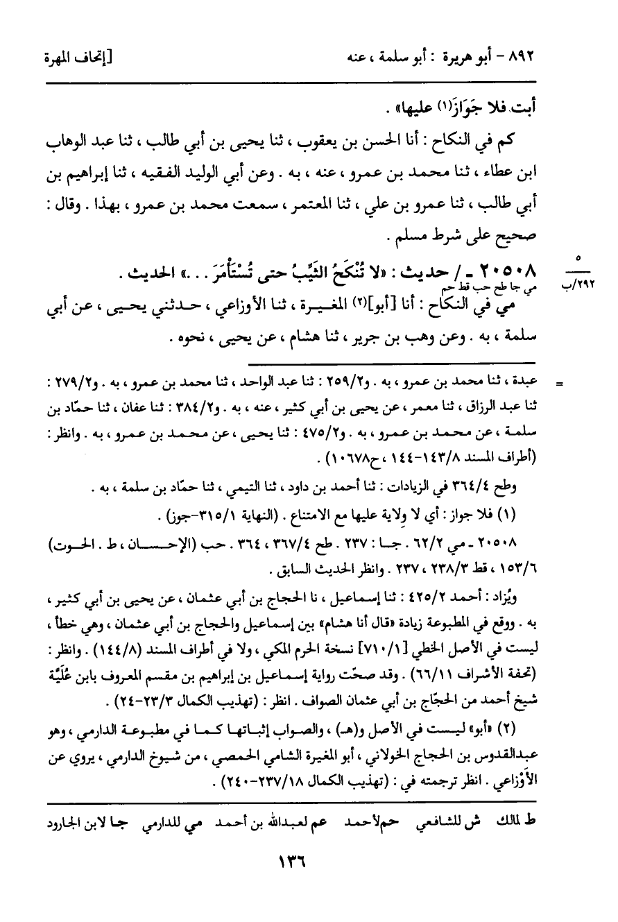 مي في النكاح: أنا [أبو] المغيرة، ثنا الأوزاعي، حدثني يحيى، عن أبي سلمة، به. وعن وهب بن جرير، ثنا هشام، عن يحيى، نحوه.