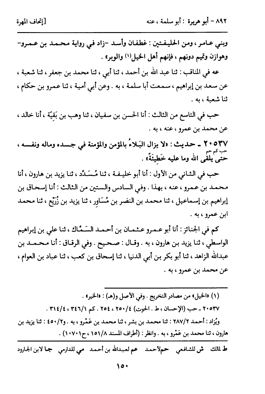 حب في الثاني من الأول: أنا أبو خليفة، ثنا مُسَدْد، ثنا يزيد بن هارون، أنا محمد بن عمرو، عنه، بهذا. وفي السادس والستين من الثالث: أنا إسحاق بن إبراهيم بن إسماعيل، ثنا محمد بن النضر بن مُسَاوِر، ثنا يزيد بن زُريع، ثنا محمد ابن عمرو، به.