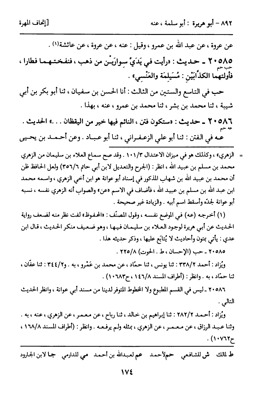 20585 - حديث (حب حم) : "رأيت في يَدَي سوارَيْن من ذهب، فنفختهما فطارا، فأولتهما الكذابَيْنِ: مسُيلِمَة والعَنْسِي".