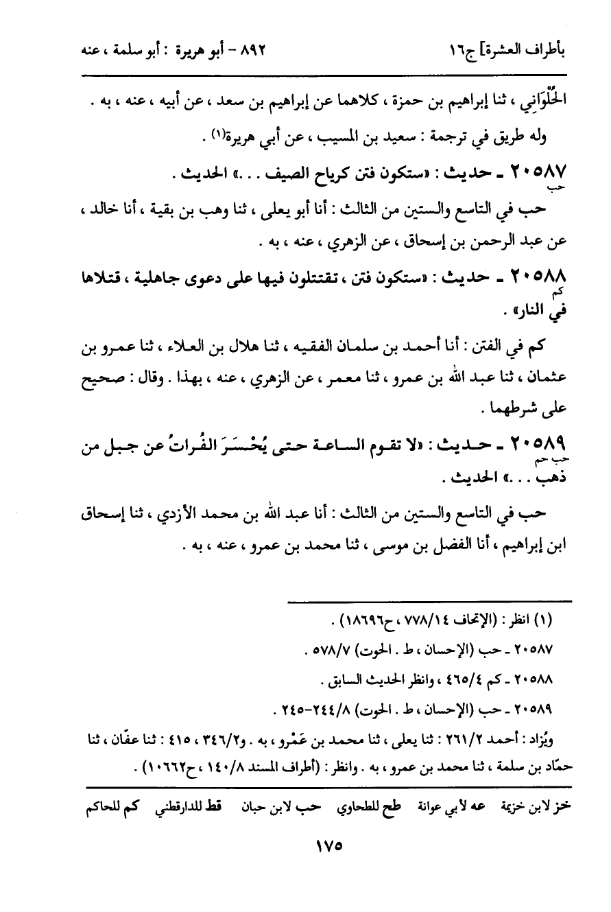 20587 - حديث (حب) : "ستكون فتن كرياح الصيف ... " الحديث.