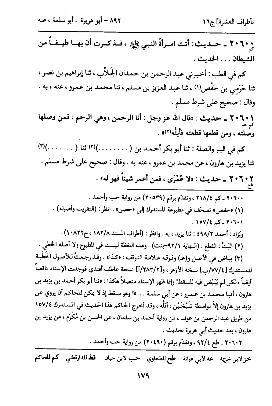20601 - حديث (كم حم) : "قال الله عز وجل: أنا الرحمن، وهي الرحم، فمن وصلها وصلته، ومن قطعها قطعته فأبتُّه".