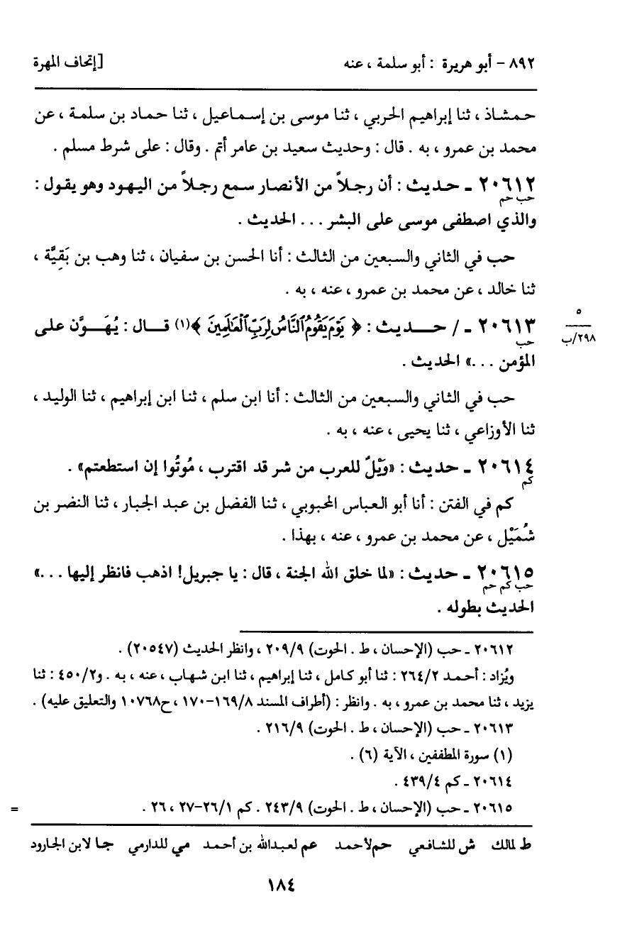 20612 - حديث (حب حم) : أن رجلاً من الأنصار سمع رجلاً من اليهود وهو يقول: والذي اصطفى موسى على البشر ... الحديث.