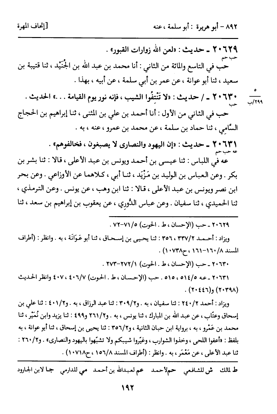 20629 - حديث (حب حم) : "لعن الله زوارات القبور".