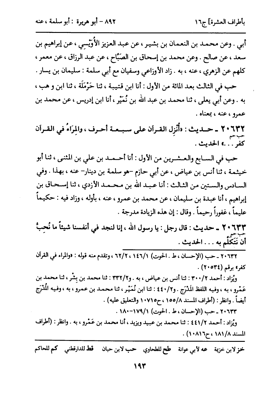 20632 - حديث (حب حم) : "أنزل القرآن على سبعة أحرف، والمِرَاءُ في القرآن كفر ... " الحديث.