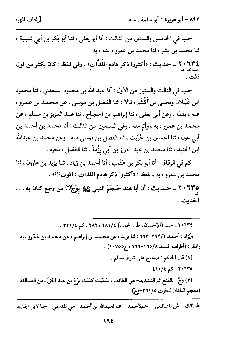 20634 - حديث (حب كم حم) : "أكثروا ذكر هادم اللَذات". وفى لفظ: كان يكثر من قول ذلك.