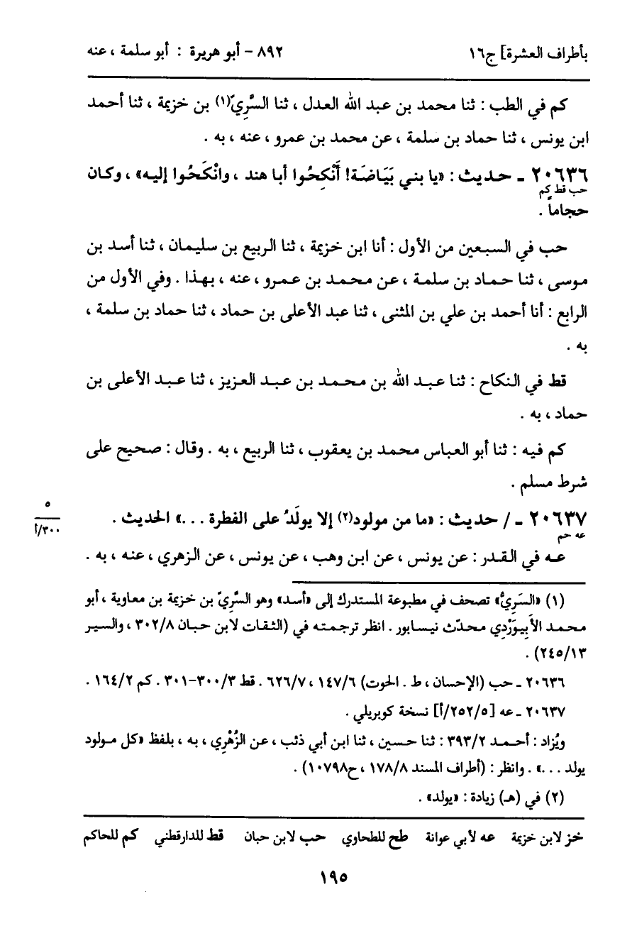 20637 - حديث (عه حم) : "ما من مولود إلا يولَدُ على الفطرة ... " الحديث.
