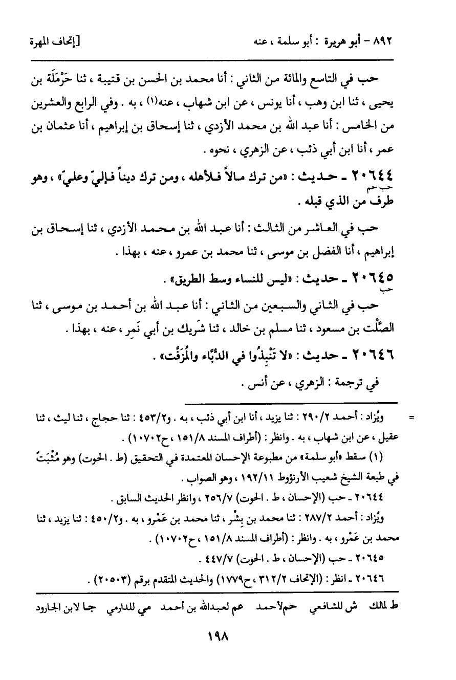 20644 - حديث (حب حم) : "من ترك مالاً فلأهله، ومن ترك ديناً فإليّ وعليّ"، وهو طرف من الذي قبله.