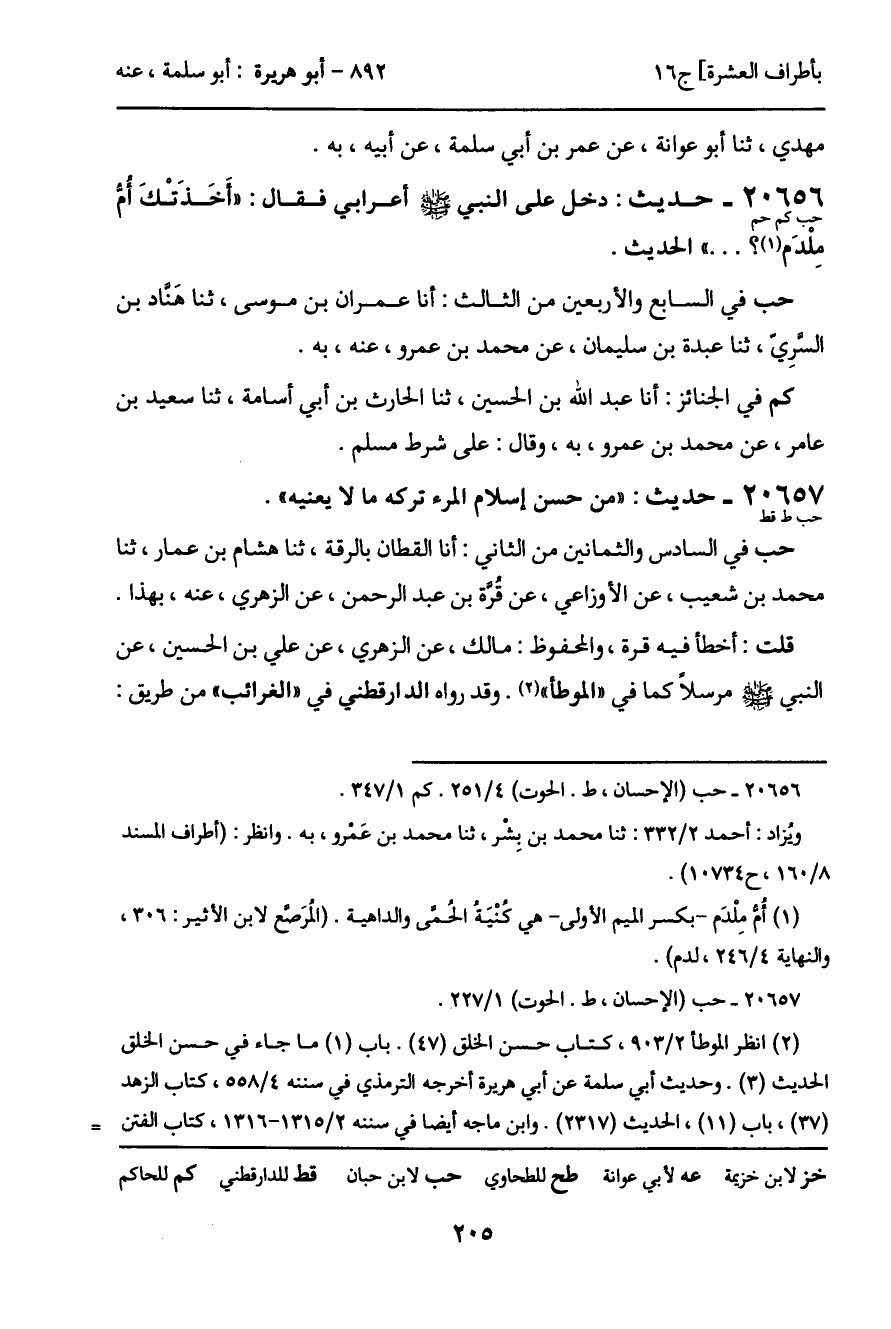 20657 - حديث (حب ط قط) : "من حسن إسلام المرء تركه ما لا يعنيه".