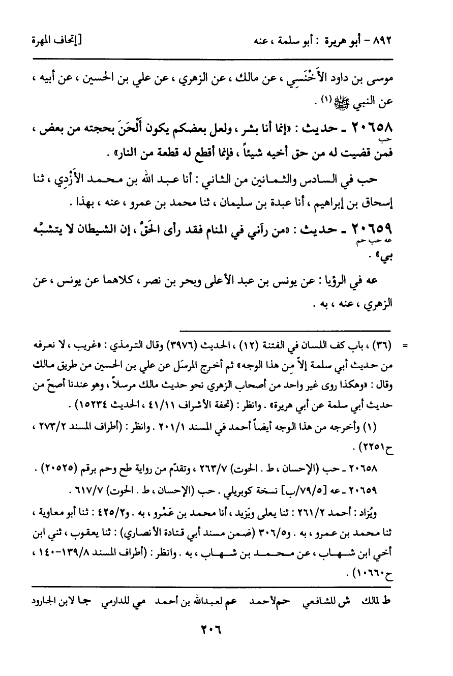 20659 - حديث (عه حب حم) : "من رآني في المنام فقد رأى الحَق، إن الشيطان لا يتشبه بي".