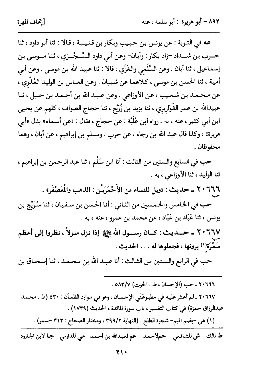 حب في الخامس والخمسين من الثاني: أنا الحسن بن سفيان، ثنا سُريج بن يونس، ثنا عَباد بن عَبّاد، عن محمد بن عمرو، عنه، به.
